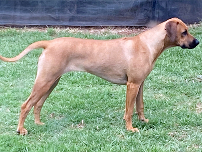 She opens doors and gates easily and is always ready to go. She loves to swim and play with her best friend, Tuku. Bubbles has a short ridge so I have decided not to show her as I only want my best quality dogs in the ring, but she has such a lovely pedigree and good conformation that she is well worth breeding from.