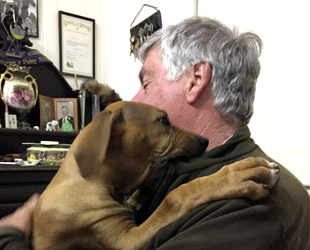 Ditto is a beautiful wheaten color with the devil in her eyes, very smart, full of energy and has more personality than any dog should have! She is, of course, totally spoilt and she has both Greg and myself wrapped around her not so little paws.