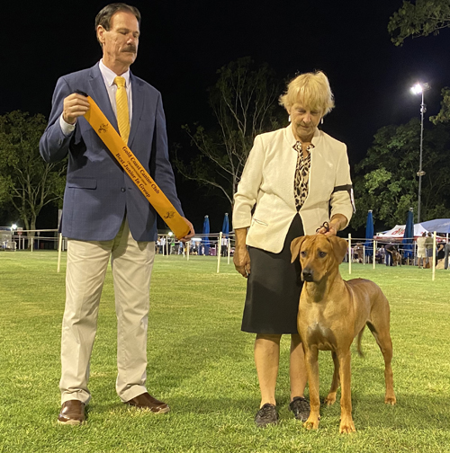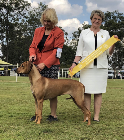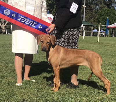 She is smart, feminine, beautifully constructed, fast and agile and very affectionate. I just love her! So do the judges as she gained her Australian Champion title very easily even though she does not particularly like the show ring. She has an almost perfect hip and elbow score and is clear of other genetic diseases.